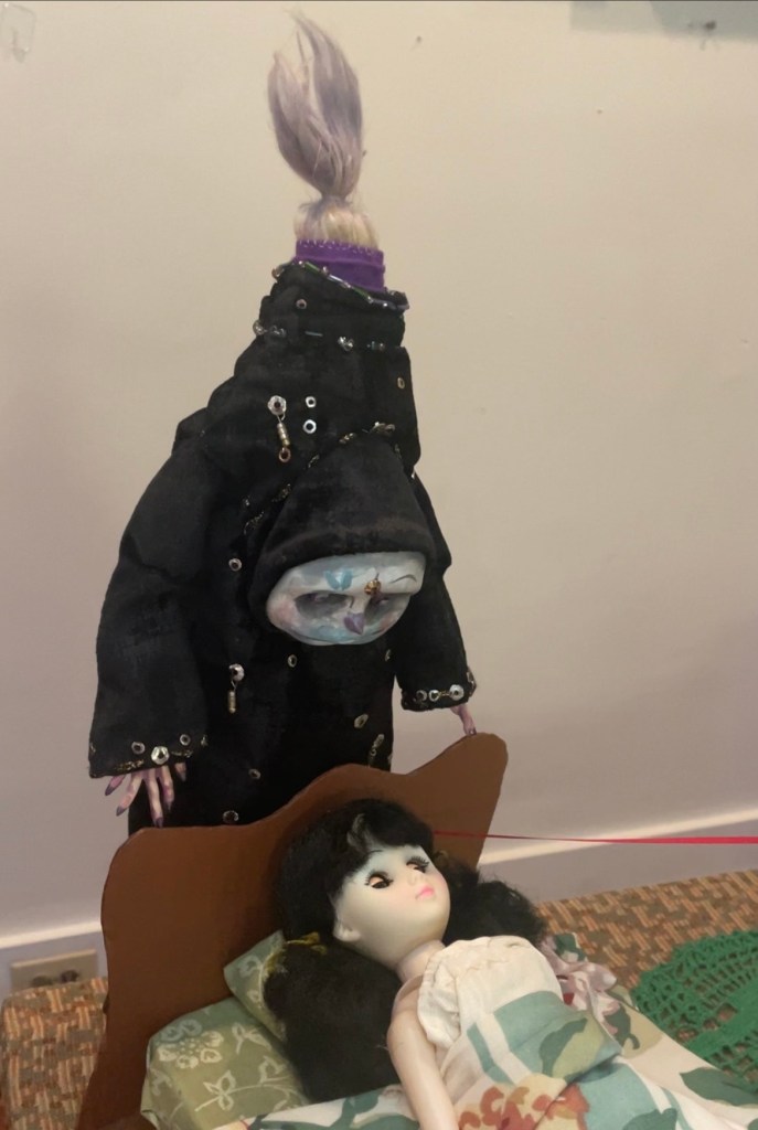 Annajane is a sculptor based in Pennsylvania. She started this summer as artist of the month for May with their work on display at the Eso (pronounced eh-so) Arts gallery in Lancaster County. Annajane and I have been TikTok mutuals for some time now, our love of puppets bonding us. Most notably, she made a puppet called DreamWeaver, who was the protagonist of her latest diorama, Renewal Vision, installed at the gallery.