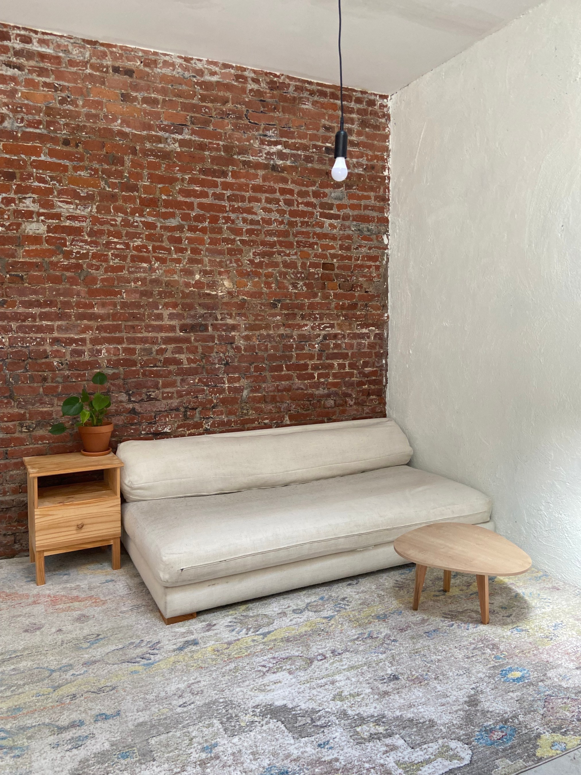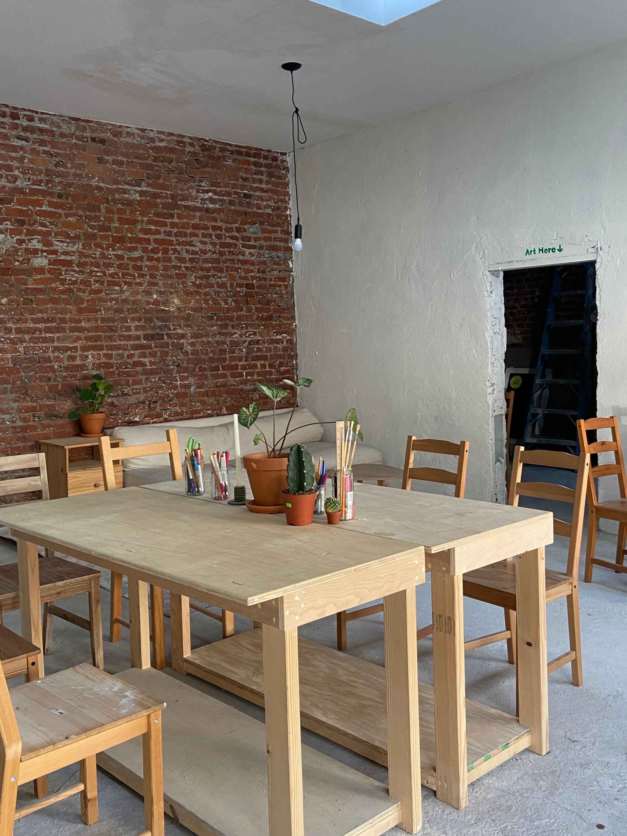 Now dressed with exposed wooden furniture and sprouting potted plants, the studio came together with two months-worth of mental, emotional, and physical labor. The sisters painted, thrifted furniture – pretty much anything Alie and Vivian could do themselves, they did.
